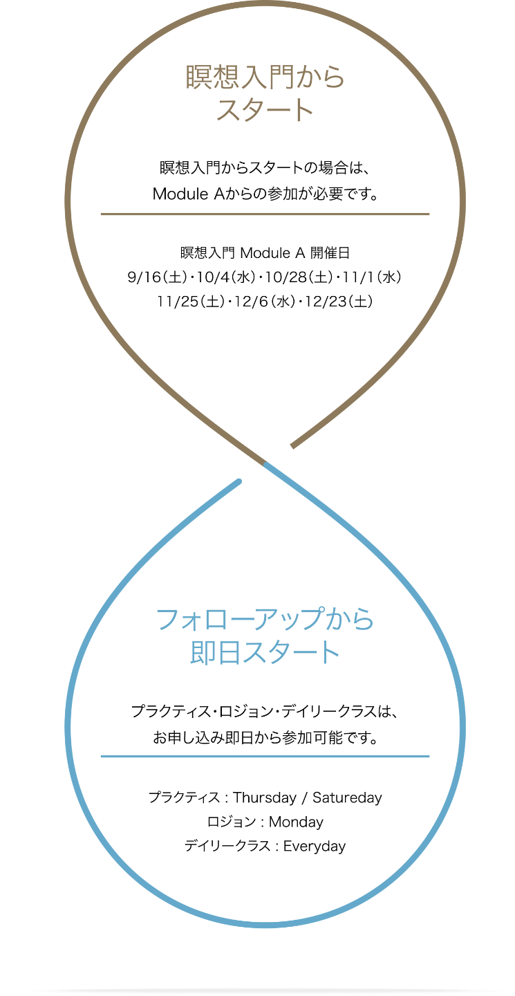 対面/オンライン同時開催・録画視聴可。まずは 瞑想入門(Lv.1) からスタート。